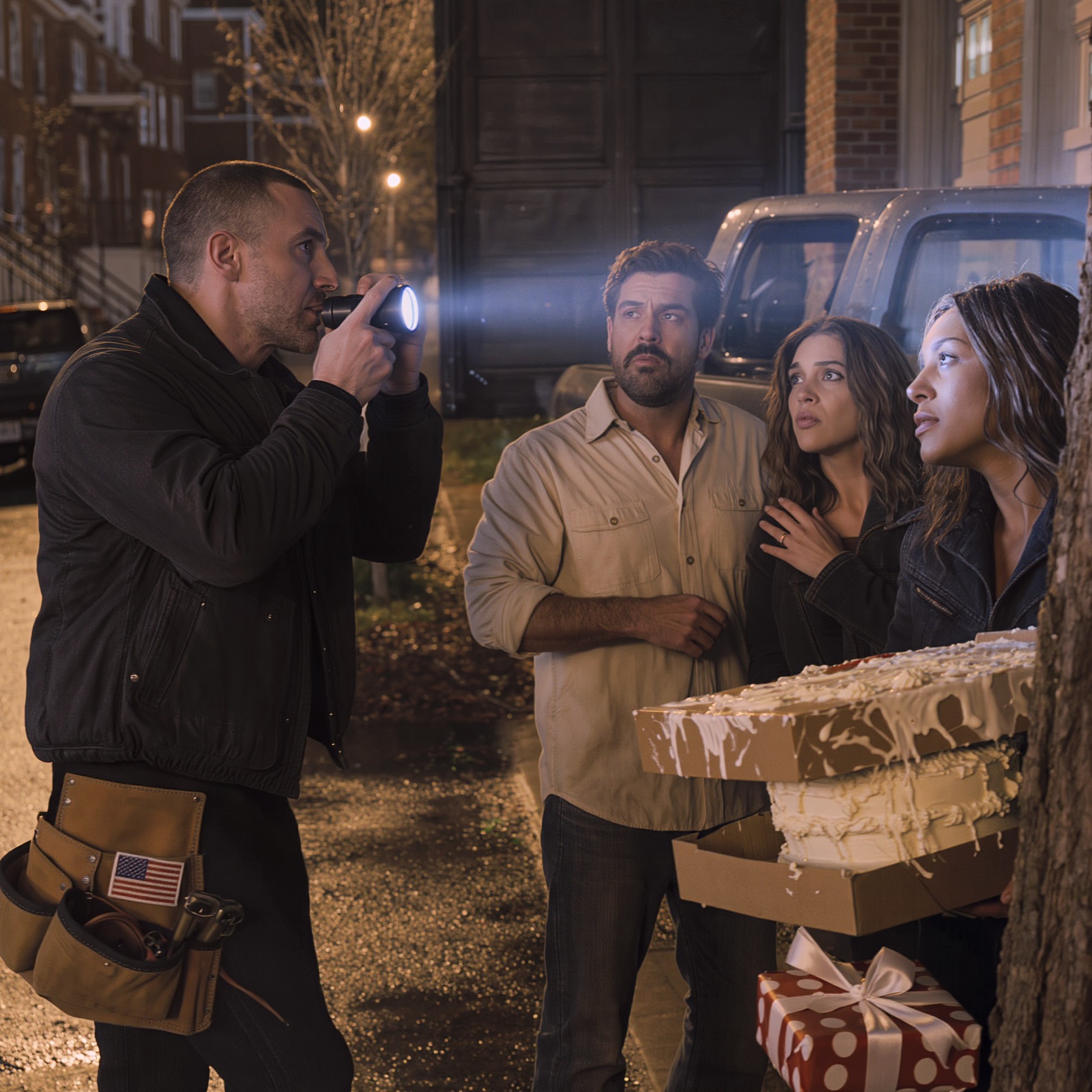 „Przyniosłam ci tort urodzinowy” – powiedziałam niewinnie, mrugając, jakbym nie rozumiała. „Mówiłeś mi, że musisz tu pracować”.