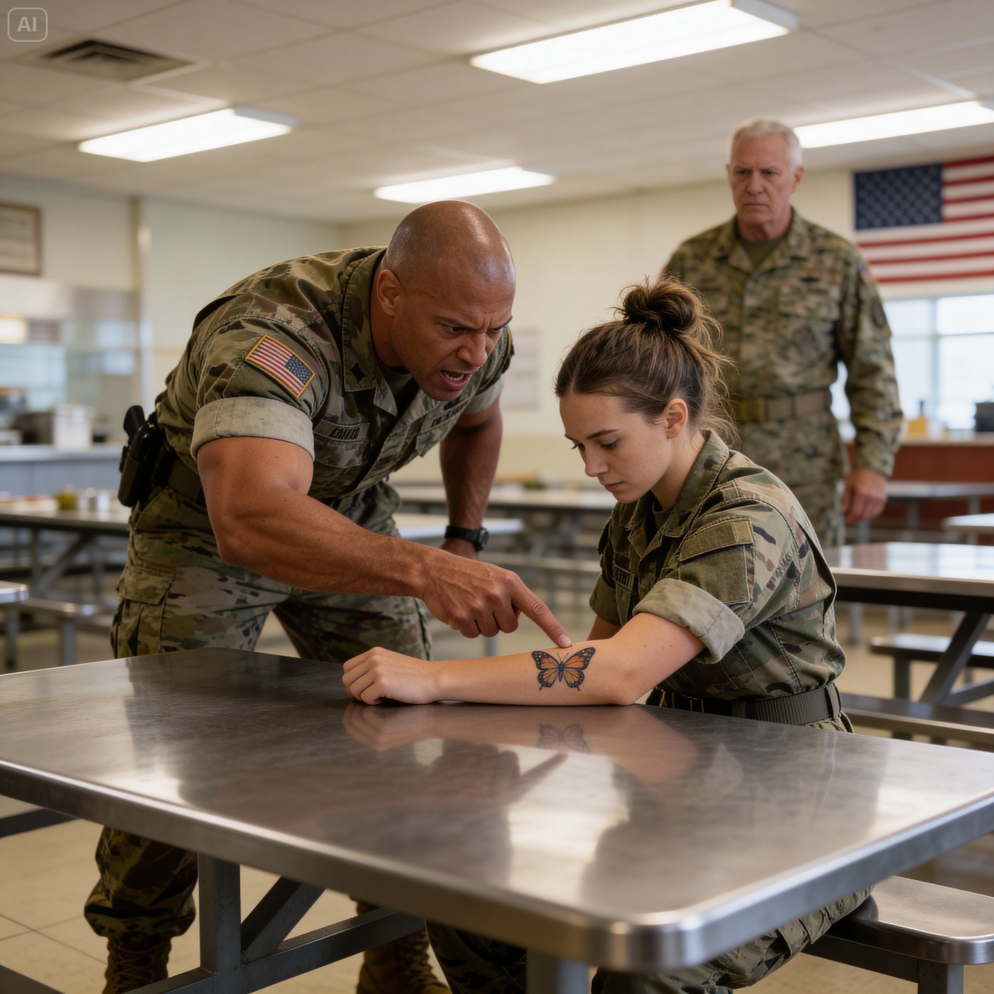 „Tak, proszę pana” – powiedział Davis, odzyskując nieco pewności siebie. Wskazał mnie wolną ręką, choć wciąż nie puścił mojego nadgarstka. „Chodzi po tej bazie, zachowując się jak żołnierz pierwszej rangi. Nosi ten tatuaż. Widział go pan dziś rano, proszę pana. Widział pan, jak znieważyła drużynę. Ja tylko upewniam się, że zna swoje miejsce. Ci cywile tu przychodzą, biorą wypłatę, robią sobie trochę tatuażu i myślą, że wiedzą, co robimy. Myślą, że wiedzą, czym jest poświęcenie”.