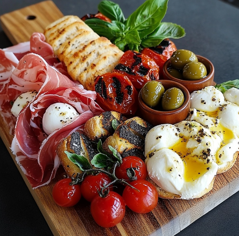Włoski talerz antipasti to kwintesencja prostoty i jakości, z których słynie kuchnia śródziemnomorska. Kilka starannie dobranych składników, minimum obróbki i maksymalny smak – właśnie na tym polega jego siła. Ten zestaw z mozzarellą di bufala, surową szynką prosciutto, oliwkami oraz chrupiącymi grzankami bruschetty doskonale sprawdzi się jako lekki lunch, kolacja do dzielenia się z bliskimi lub efektowna przystawka na spotkanie w gronie przyjaciół.
