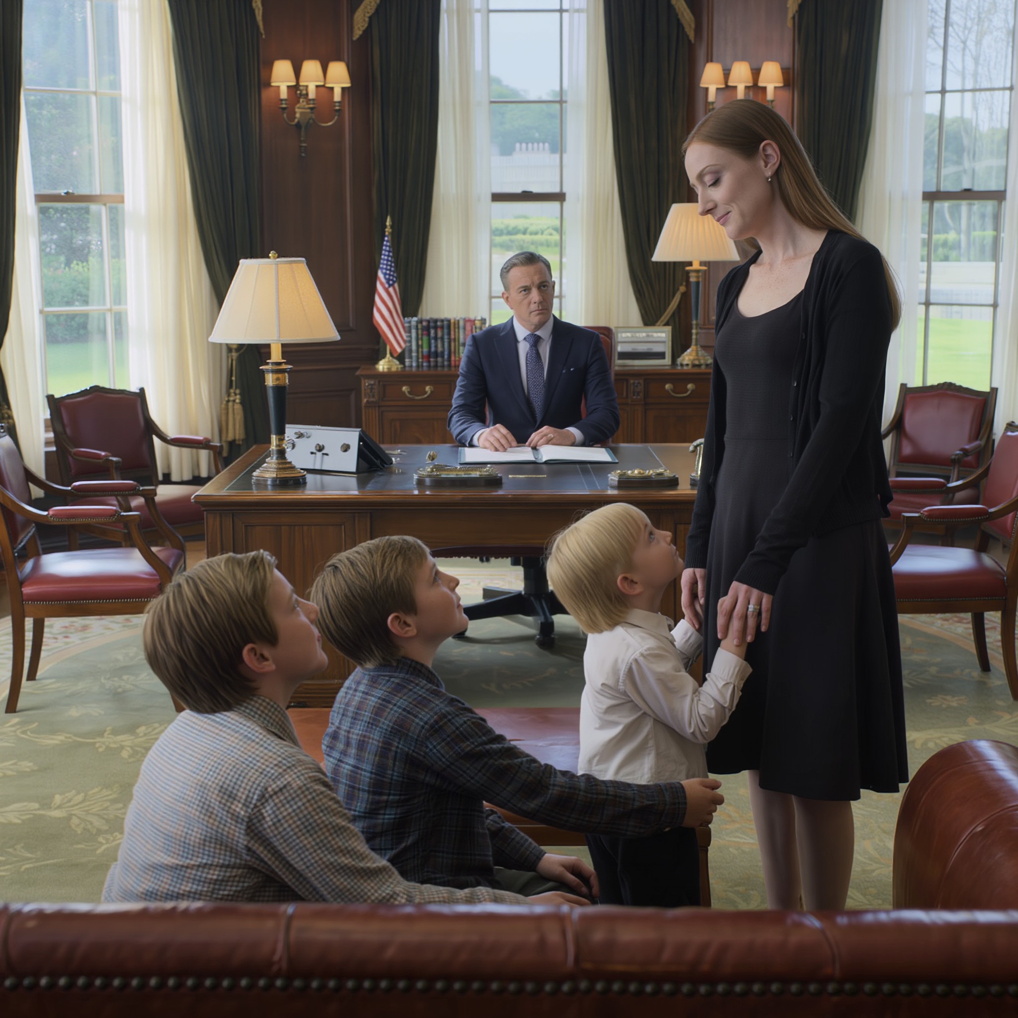 Nieopodal, na skórzanej sofie siedziała trójka dzieci — chudych, cichych, nienaturalnie nieruchomych.