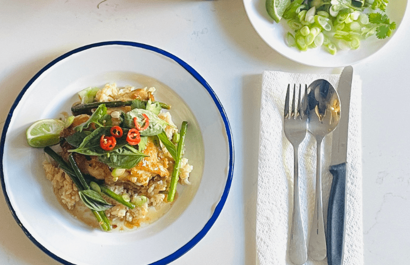 Mając w torbie kilka niezbędnych produktów oraz przemyślaną, prostą listę zakupów, możesz jednak przygotować posiłek, który będzie świeższy, bardziej pożywny i zdecydowanie smaczniejszy niż cokolwiek dostarczonego pod drzwi. Ta inspirowana kuchnią tajską zapiekanka z kurczakiem jest tego najlepszym przykładem.
