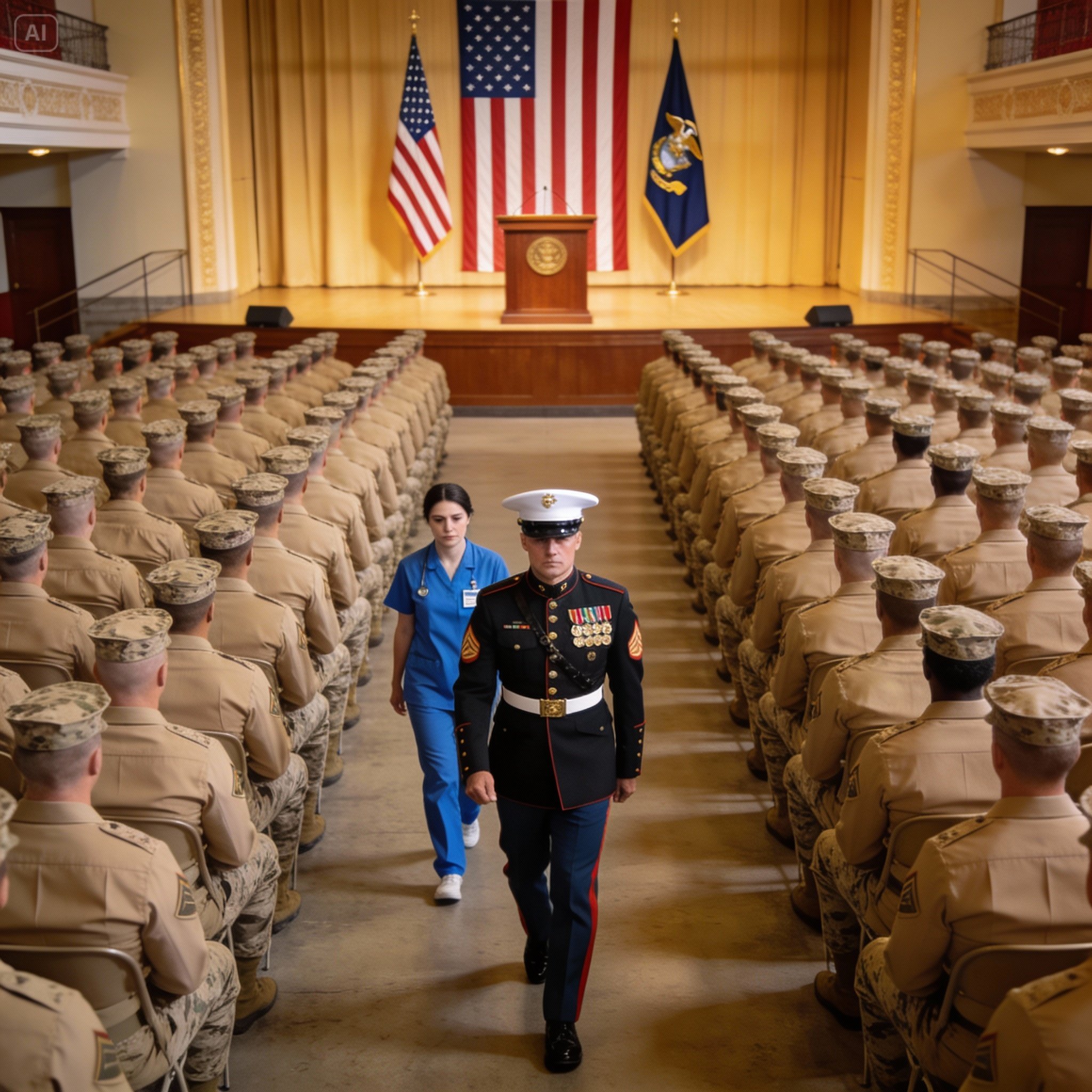 Sala ceremonii w Bayou Ridge była pełna. Mówimy o odświętnych strojach, wypolerowanych strojach z mosiądzu, rodzinach w odświętnych strojach. Dwieście osób siedziało w rzędach, wyciszonych i pełnych oczekiwania. Klimatyzacja szumiała, flagi dumnie powiewały na scenie. To było wydarzenie, które przebiega według ściśle ustalonego harmonogramu.