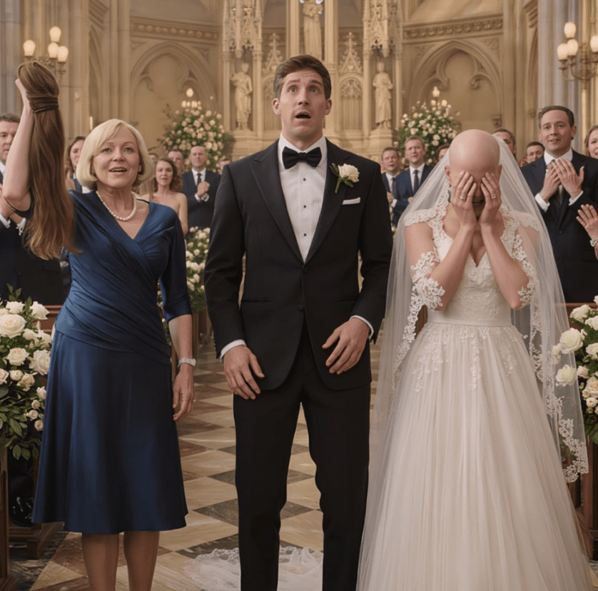 Stałam tam w sukni ślubnej, instynktownie unosząc dłonie, by zasłonić odsłoniętą skórę głowy. Serce waliło mi tak mocno, że zagłuszało szepty rozchodzące się po ławkach. Okrutne słowa mojej teściowej — wypowiedziane tonem udającym „szczerość” — zawisły w powietrzu ciężkie i duszące.