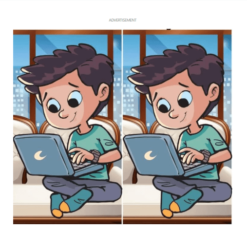 Z pozoru zwyczajny obraz: mężczyzna siedzący na kanapie, pochłonięty laptopem. Ale za tą prostotą kryje się fascynujące wyzwanie. Dwie wersje tej sceny różnią się nieznacznie, a Twoim zadaniem jest znalezienie tych różnic w zaledwie 15 sekund. Gotowy na test ostrości?