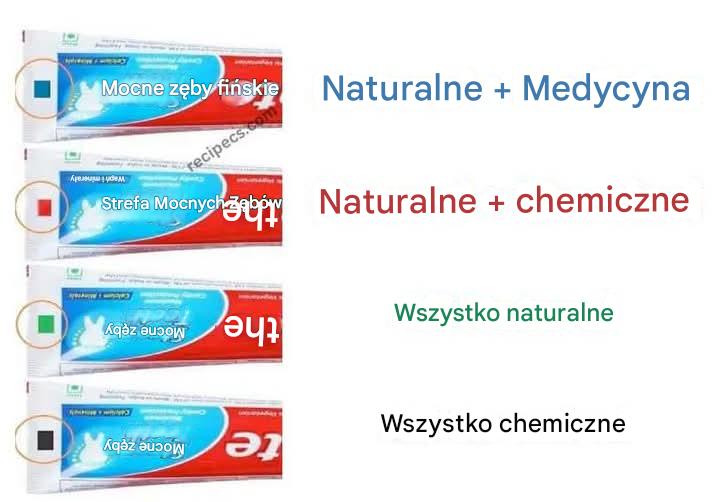 Czerwony pasek na tubce pasty do zębów zazwyczaj oznacza połączenie składników naturalnych i syntetycznych. Ten rodzaj pasty do zębów ma na celu zrównoważenie składników naturalnych z niezbędnymi sztucznymi dodatkami, takimi jak fluor, który chroni przed próchnicą. Chociaż te pasty do zębów mogą być skuteczne, osoby poszukujące stylu życia wolnego od chemikaliów powinny dokładnie zapoznać się z listą składników, aby zrozumieć rolę każdego z nich.